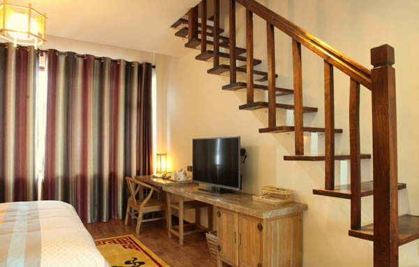 公館擁有各種特色客房35套(其中溫泉SPA客房28套、閣樓復(fù)式套間4套,浪波水床間4個),還有茶飲就餐區(qū)、自然大講堂、韓蒸時代汗蒸館、空中花園咖啡屋、創(chuàng)意棋牌室、高檔禮品區(qū)及連鎖粗糧小吃鋪等配套設(shè)施與項目。公館客房不僅擁有高星級酒店的舒適度,還有濃郁的“深山溪畔快活老街——溪布街”的地域街區(qū)文化特色及原生氣息的家居布設(shè)。