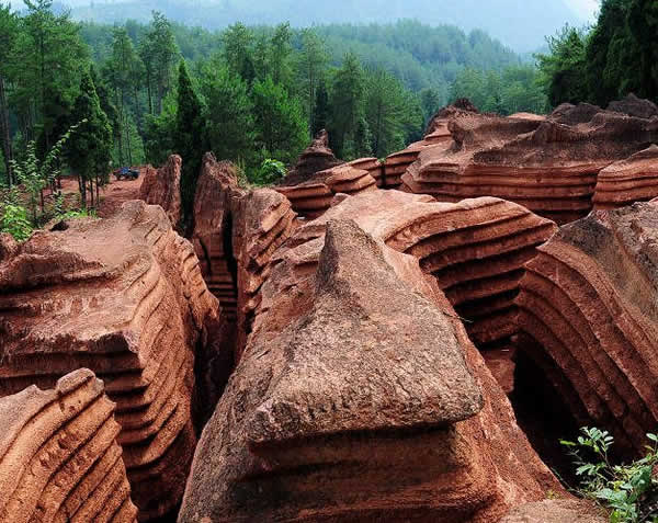 紅石林圖片 目前湖南省境內(nèi),張家界市與湘西自治州均發(fā)現(xiàn)了紅石林,其中湘西古丈紅石林2005 年被批準(zhǔn)為國(guó)家地質(zhì)公園。據(jù)了解古丈紅石林最初也深埋地下,只有部分留在地表,確定為景區(qū)后,大型的挖掘機(jī)械在景區(qū)內(nèi)連續(xù)作業(yè),讓深埋地下的石林全部重見天日。而我市的紅石林仍然在沉睡著等人喚醒。 |