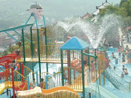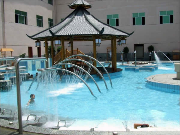 兒童游樂園 卡通噴泉、急速滑梯……這里的童話世界讓您的孩子恍若天使般幸福、快樂!銀鈴般的笑聲,充滿童稚音的歌聲,響徹云霄。美妙的孩童時光從這里開始,五彩斑斕的人生從這里起步。水溫36-38度,專為兒童設計,設有水上滑道和花樣繁多的兒童小品:蘑菇噴淋、水槍、浮漂等,讓您的孩子盡情釋放活潑快樂。