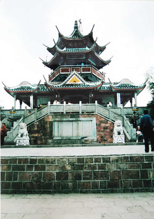 六奇閣是一幢塔狀的樓臺(tái),座落在黃石寨的最高處。它是自然景觀群體唯一的一處人文景觀,突兀在石砌的方臺(tái)基上。湘潭大學(xué)教授羊春秋老先生于此撰聯(lián)曰:名動(dòng)全球,到此真堪三擊節(jié);勢(shì)拔五岳,歸來(lái)不用再看山。