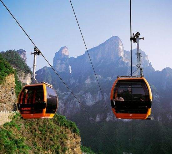 百龍?zhí)焯,垂直高?35米,運行高度326米,由154米山體內(nèi)堅井和172米貼山鋼結(jié)構(gòu)井架等組成,采用三臺雙層全暴露觀光電梯并列分體運行,每臺次載客50人次,運行速度3米/秒,三臺同時運行每小時往返量達4000人次。百龍?zhí)焯莸男藿▽崿F(xiàn)“山上游,山下住”的目標(biāo),提供了交通保障,將袁家界天下第一橋、迷魂臺、天懸白練以及烏龍寨、楊家界等絕世美景從幕后推向了前臺,并將天子山、袁家界、金鞭溪等精品旅游線路連為一體,解決了多年困擾景區(qū)的交通瓶頸問題。